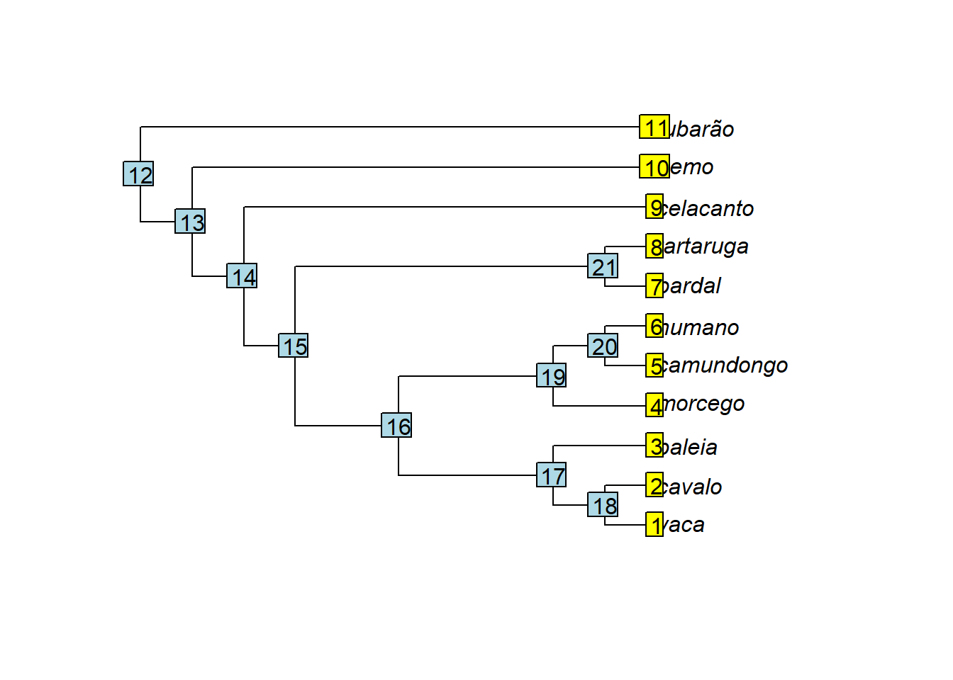 #> $ tip.label: chr [1:11] "vaca" "cavalo" "baleia" "morcego" ...