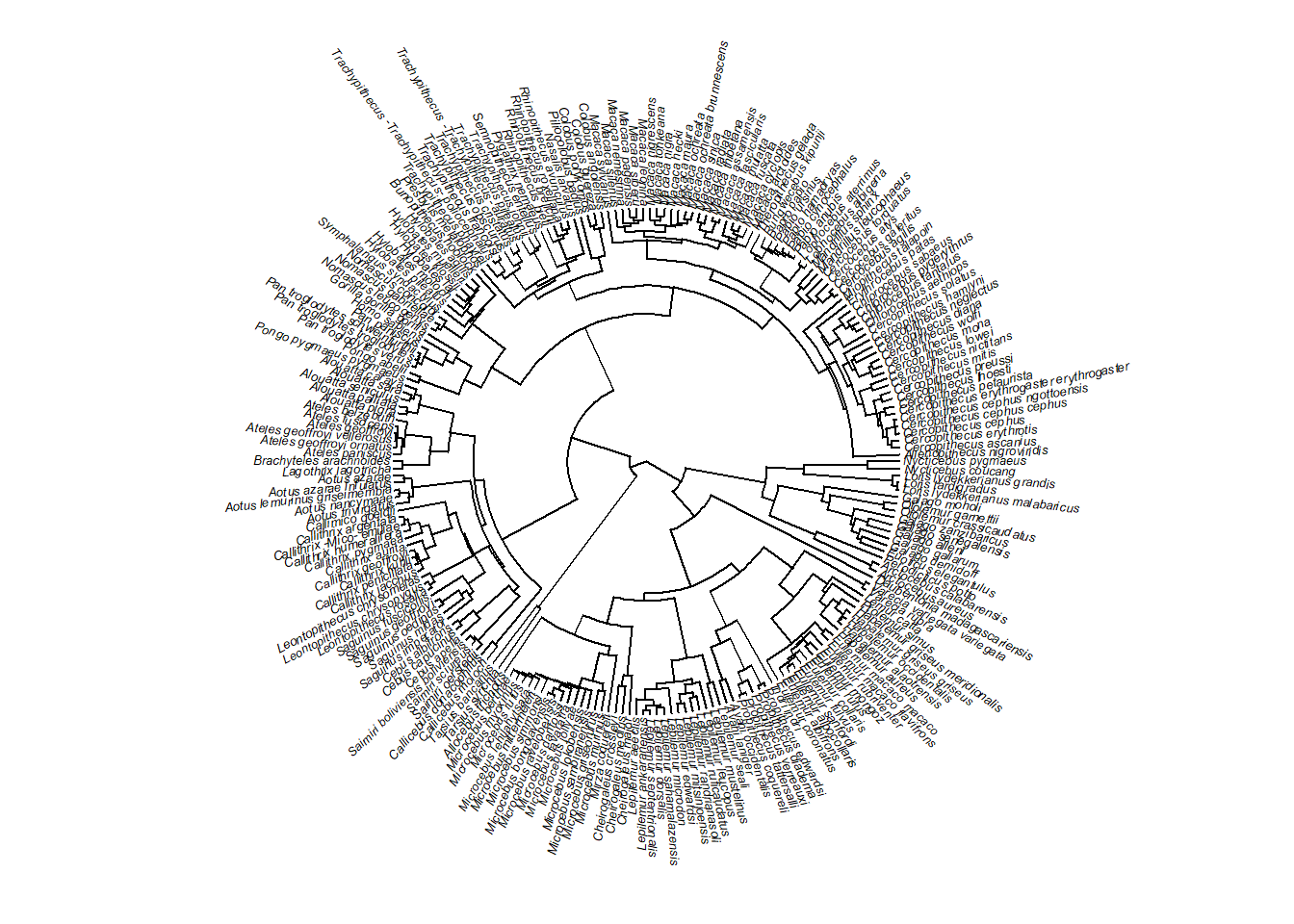 plotTree(tree,fsize=0.4,ftype="i",type="fan",lwd=1)