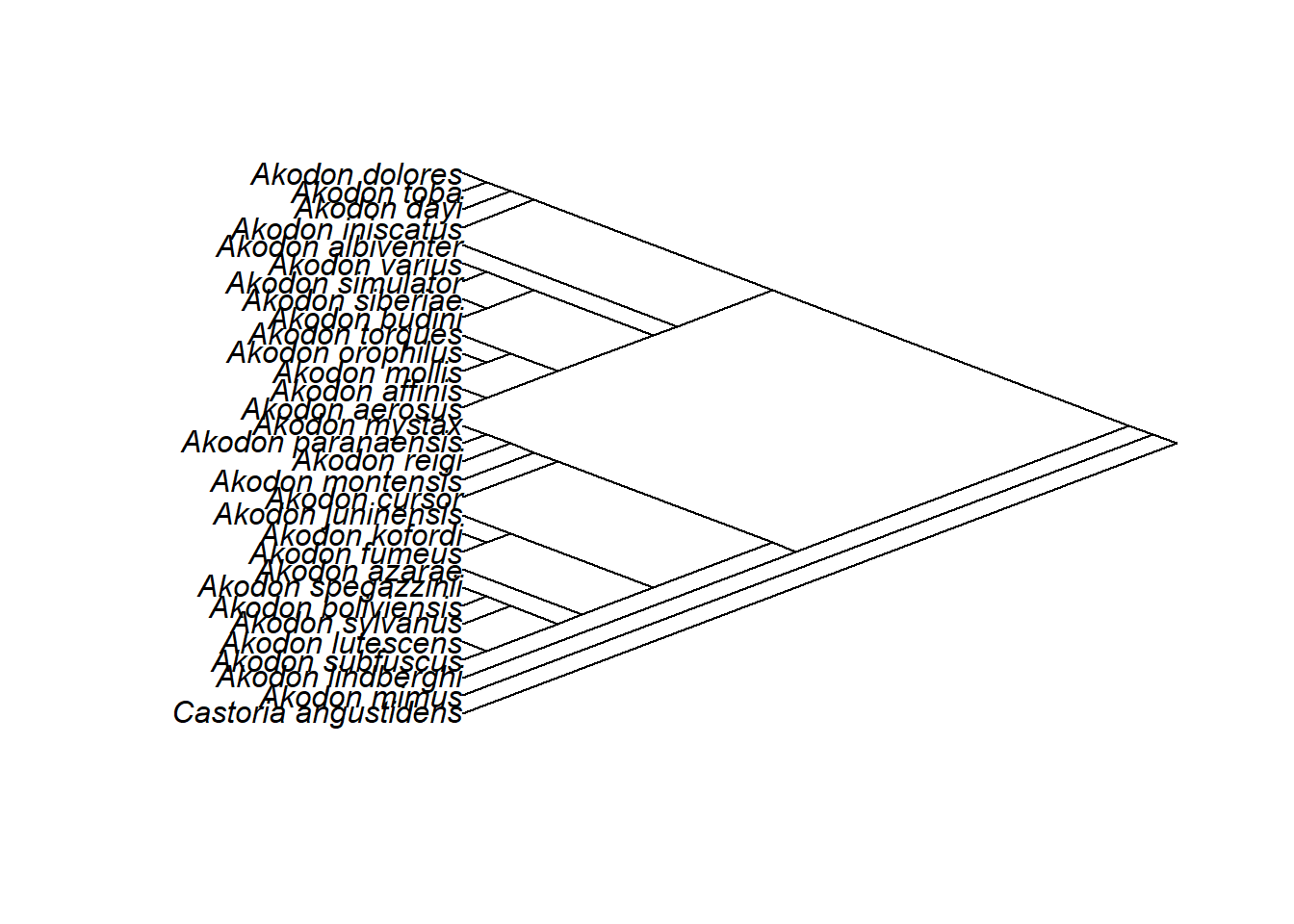 plot(akodon.tree, type = "c", use.edge.length = FALSE,direction="l",adj=0)