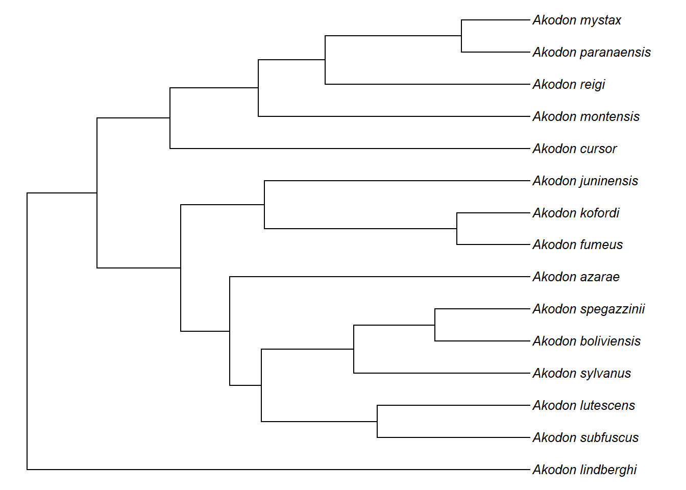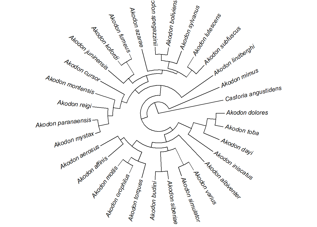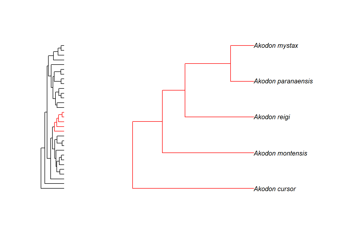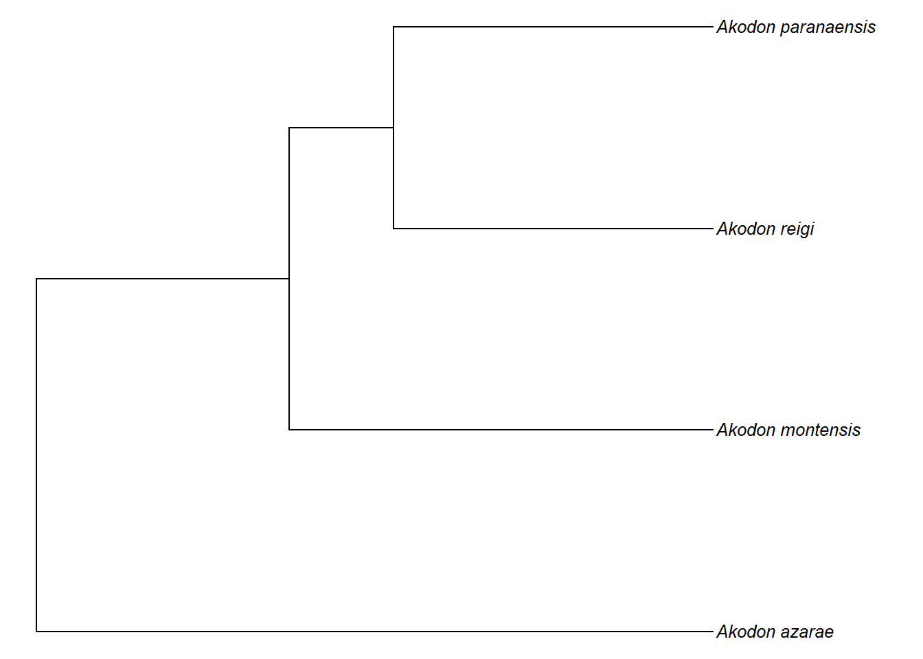 Vamos ler uma árvore filogenética do gênero de roedores neotropicais Akodon e representá-la graficamente.