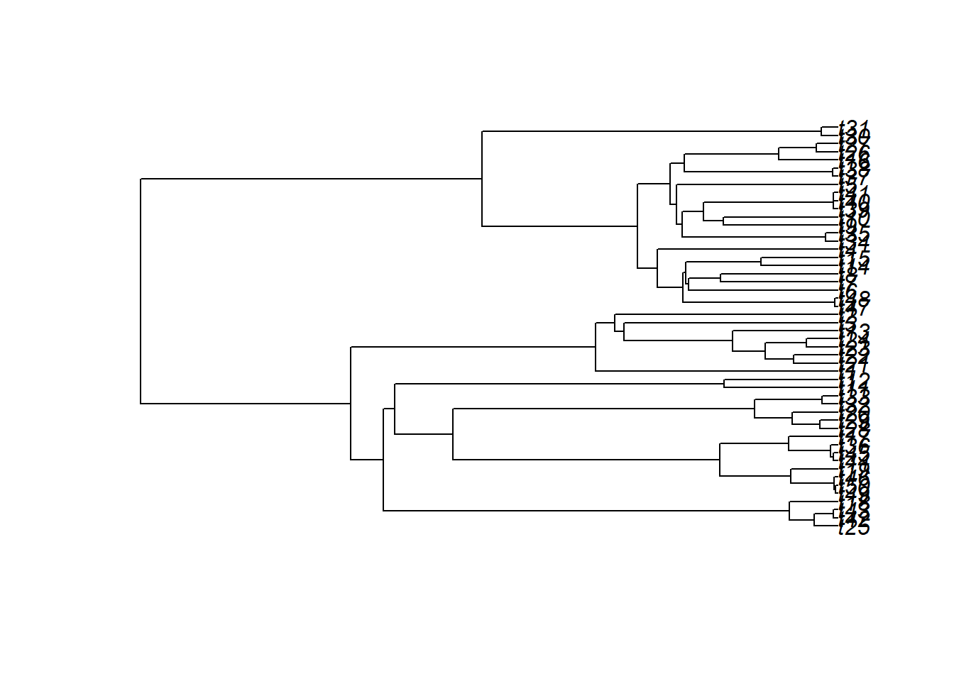 plot(akodon.tree, type = "c", use.edge.length = FALSE,direction="l")