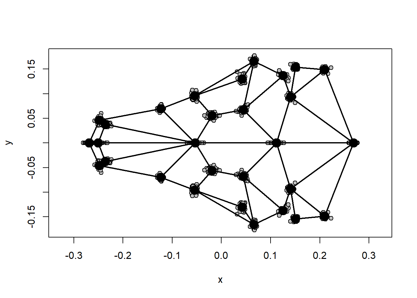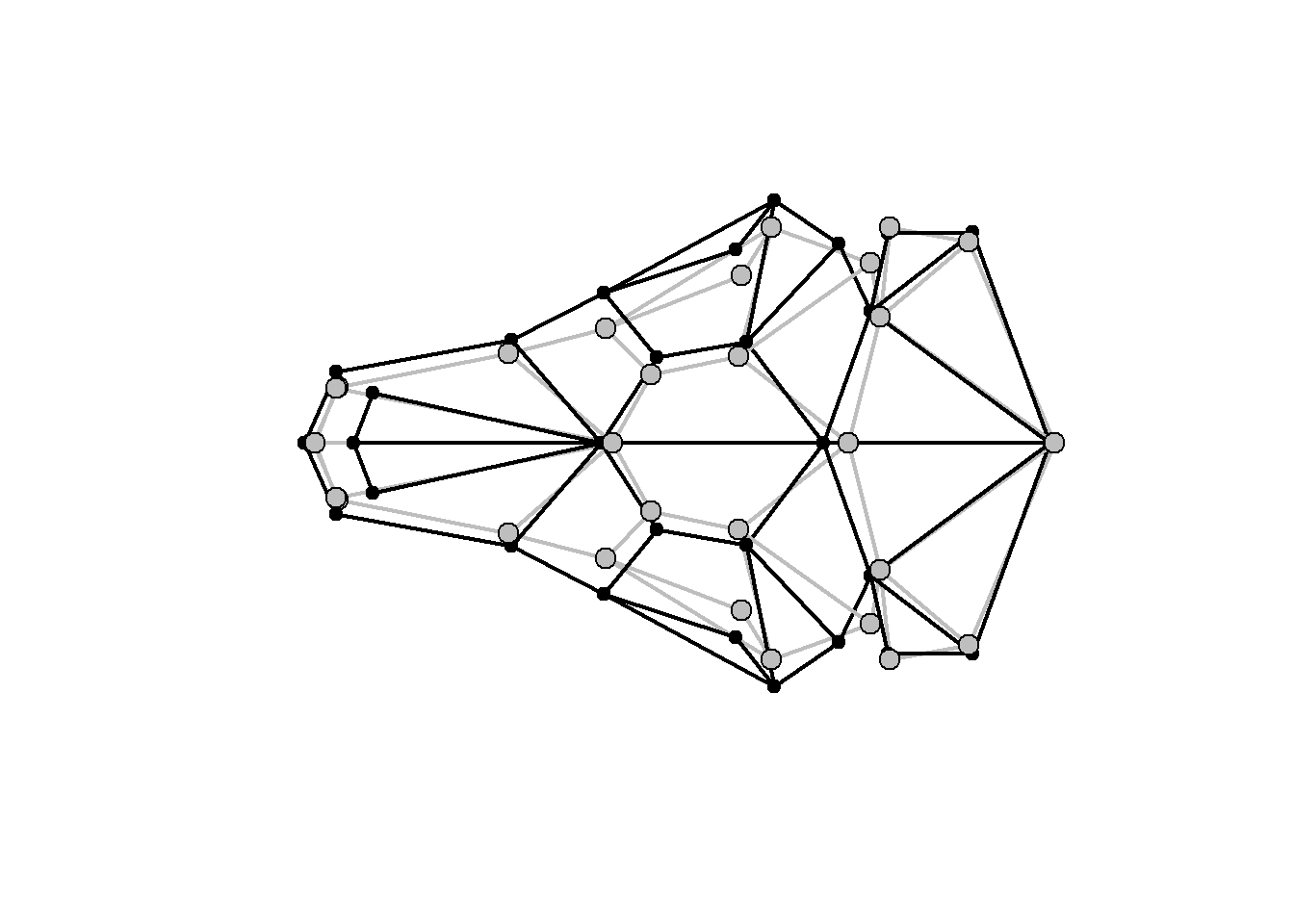 plotRefToTarget(ref,shape.sym[,,8],links=links.tuco,method="points",gridPars=GP1) # alvo = em preto, referência = em cinza