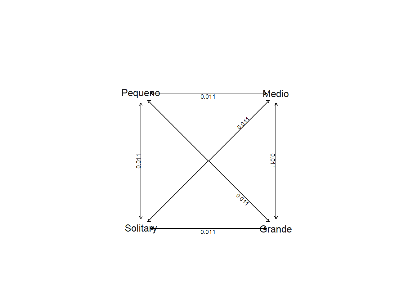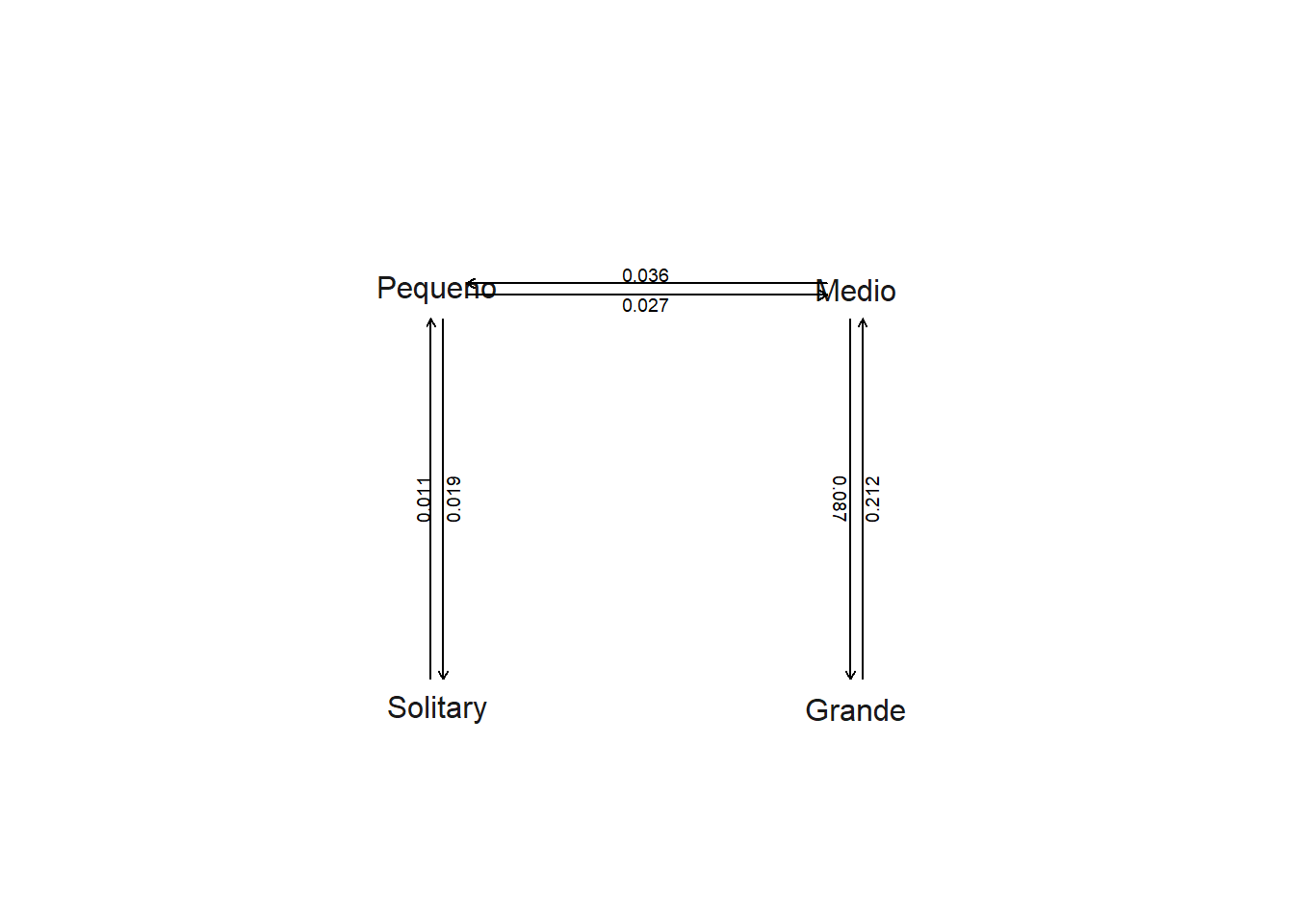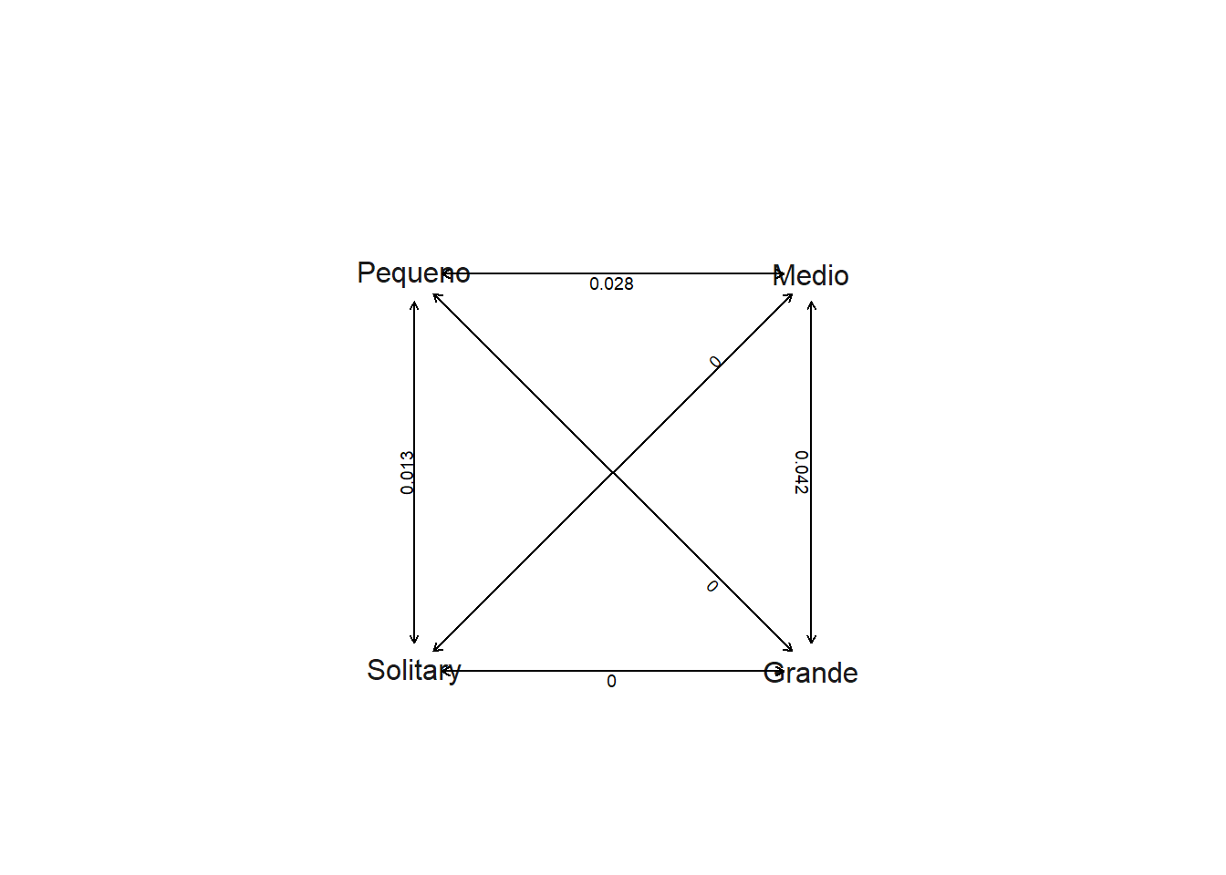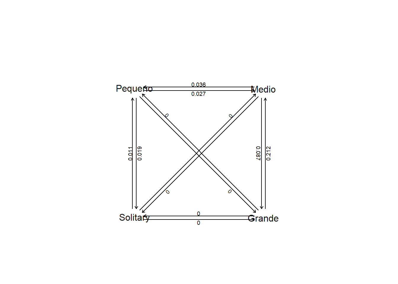 colnames(matriz)=rownames(matriz)=c("Grande","Medio","Pequeno","Solitary")